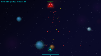 A retro space shooter with rhythm-synced combat, procedural waves, and bosses battles. Upgrade your ship between waves, chain kills for a score multiplier, and face bosses
